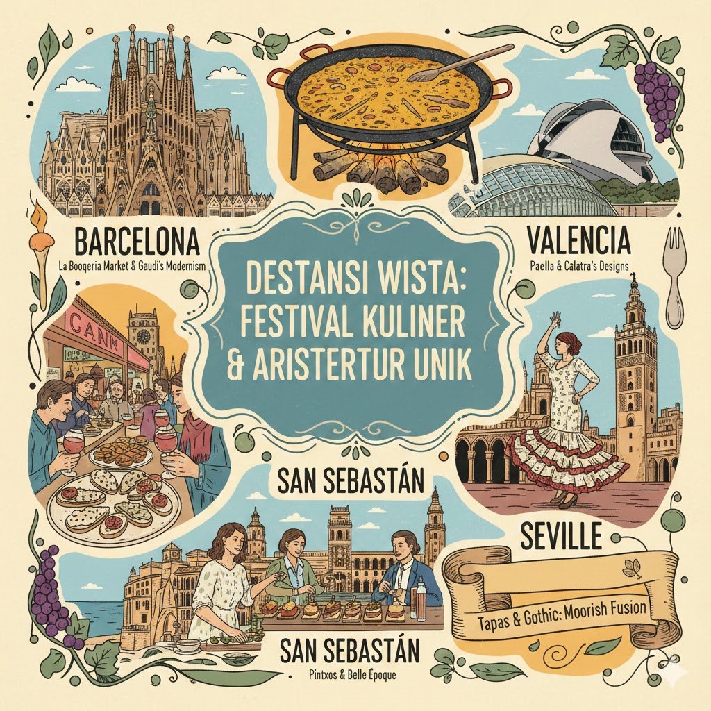 Spanyol bukan sekadar negara di ujung Eropa; ia adalah sebuah perayaan kehidupan yang tumpah ruah di jalanan melalui estetika visual dan cita rasa. Bagi para pelancong yang mencari perpaduan sempurna antara kemegahan visual dan petualangan lidah, Spanyol menawarkan pengalaman yang sulit ditandingi. Dari garis pantai Mediterania hingga jalanan berbatu di pedalaman, setiap sudut negara ini menyimpan cerita yang tertuang dalam bentuk fasad bangunan yang berani dan aroma masakan yang menggugah selera.